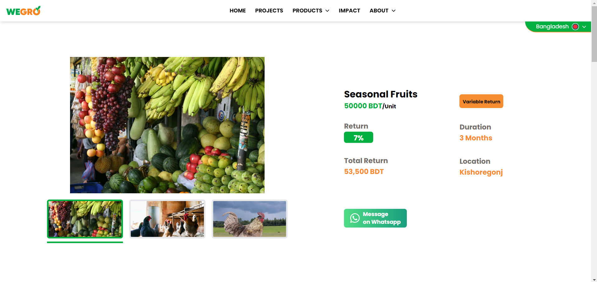 The project page will finally offer the option to book the investment and/or contact our WeGro team on WhatsApp to know more information.